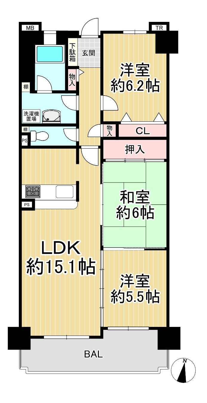 | 専有面積 | 壁芯 74.07㎡ | 所在階 | 13階建/6階部分 |